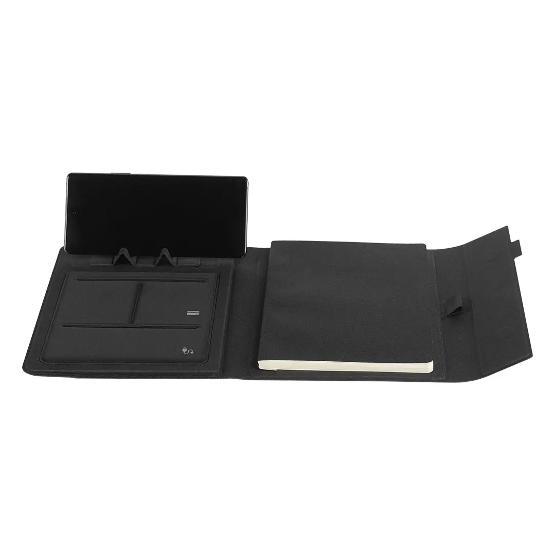 Portfolio case with A5 notebook, mobile phone stand, pen holder and additional pocket