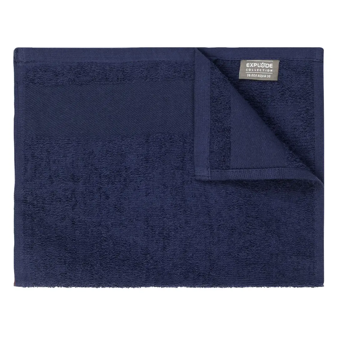 Towel, 400 g/m2, with 5 cm wide branding border and tone-to-tone cotton twill hanger