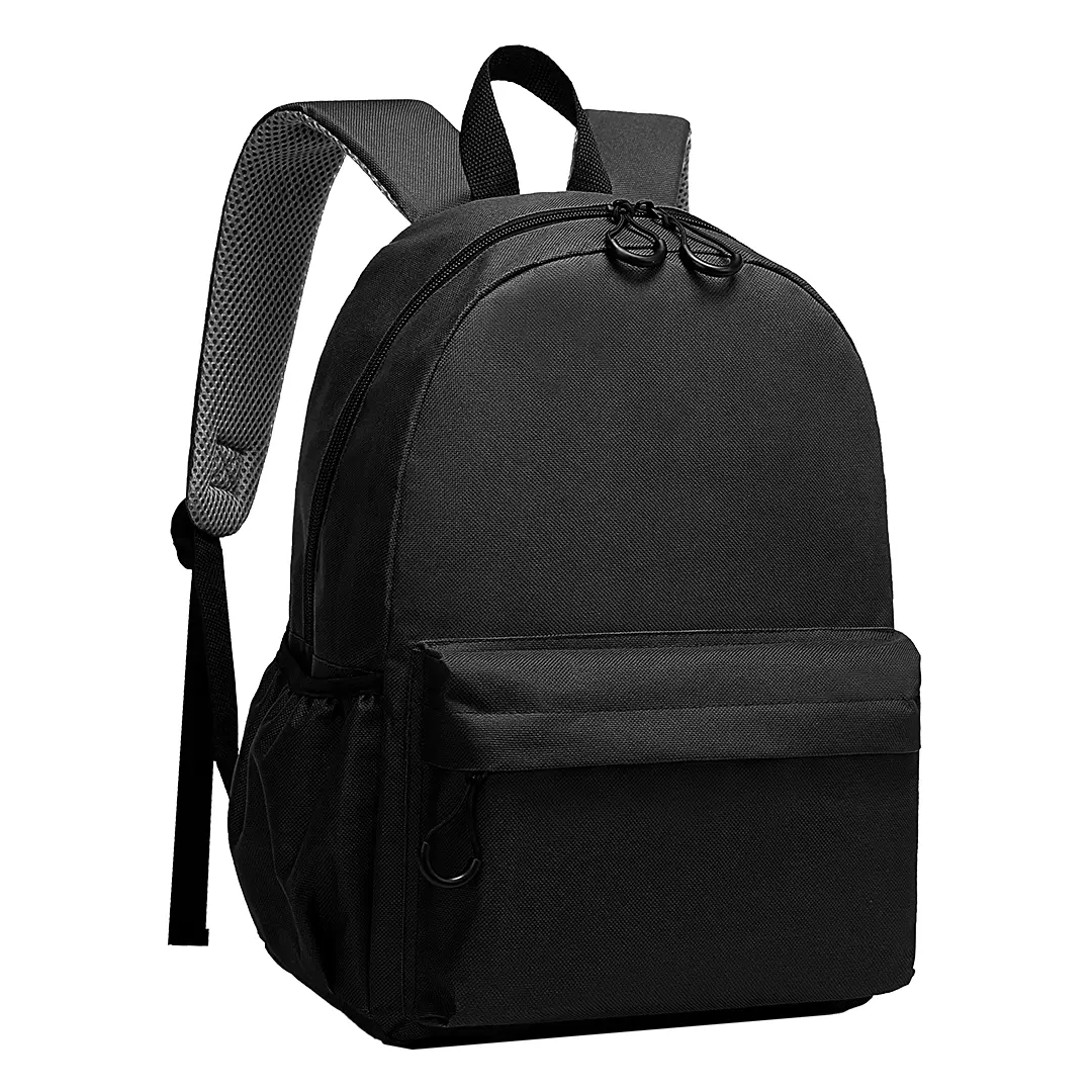 Backpack with one main compartment and front zip pocket, two side pockets, back side padded