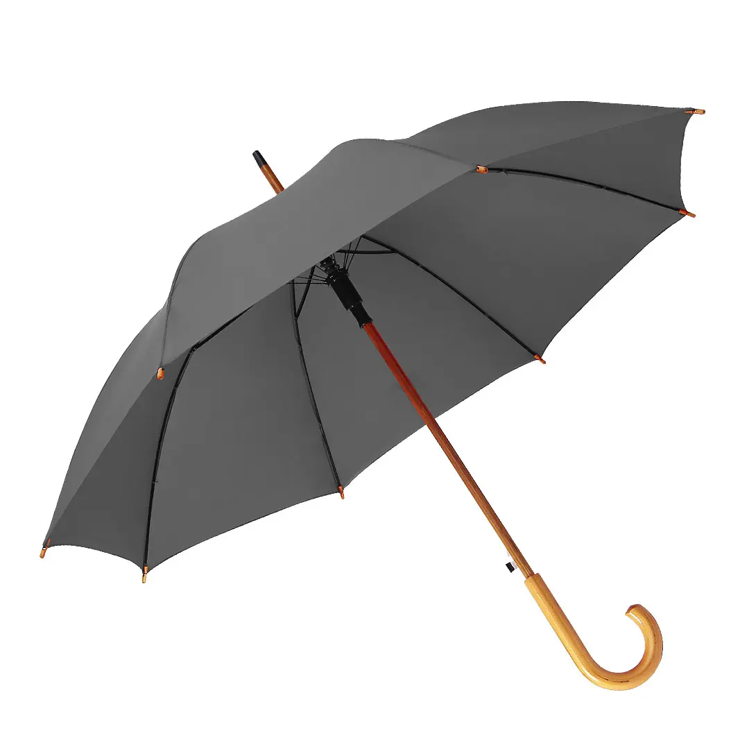 Umbrella with 8 panels, curved wooden handle, wooden shaft 14mm, top and tips