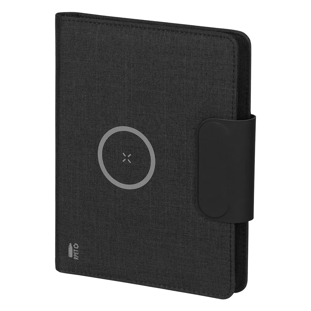 Portfolio case with A5 notebook, power bank 5000mAh, wireless charger 15W and magnet