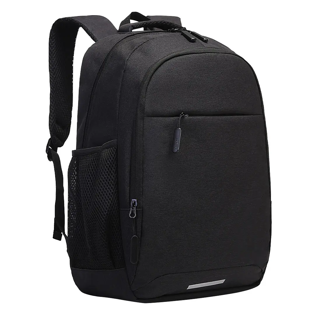 Backpack with 2 compartments, padded compartment for 15″ laptop, pocket with zipper on the front and 2 mesh pockets on the sides, USB connector