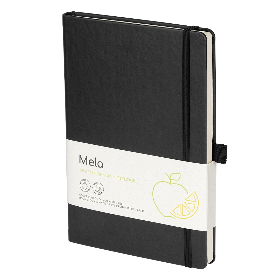 A5 Notebook with rounded edges, elastic band, pen holder and pocket on the inside
